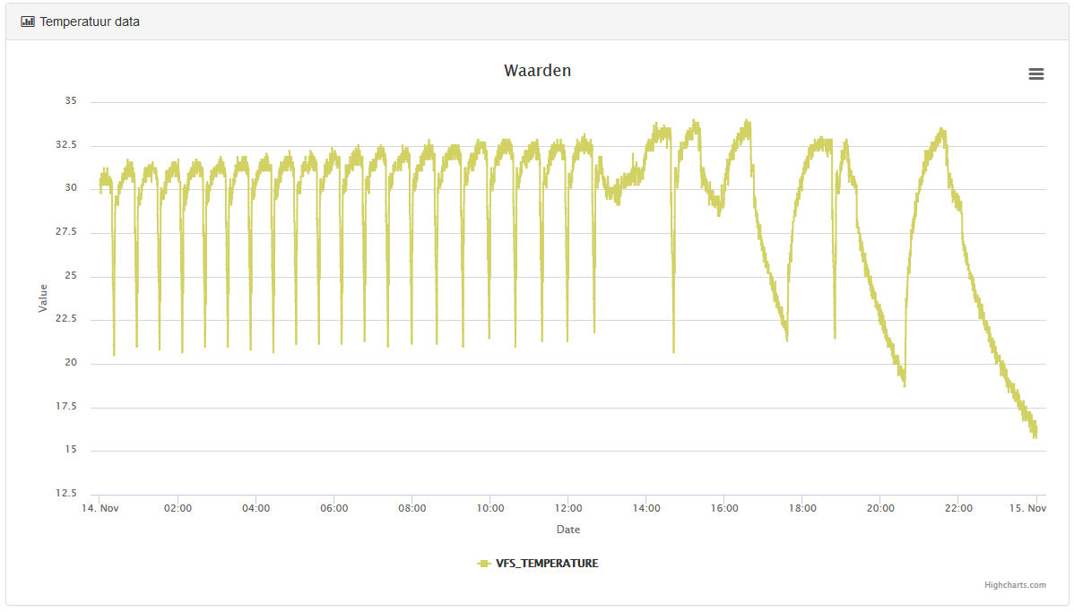 De waarde veranderd steeds licht waardoor de dikkere lijn ontstaat. Aan de hand van deze lijn is prima de temperatuur van de ELGA af te lezen.