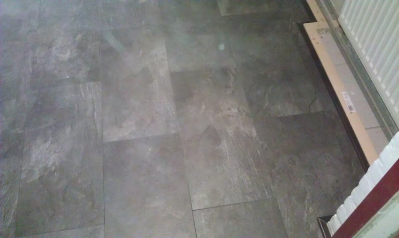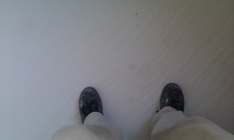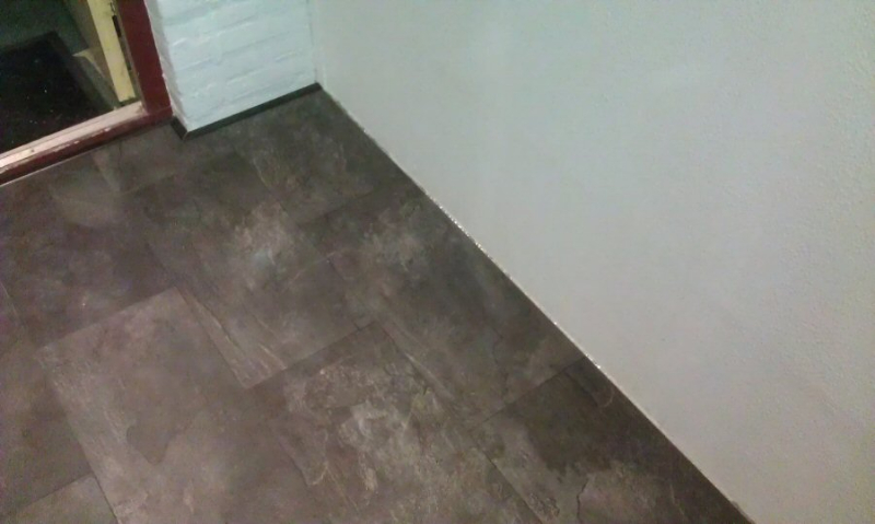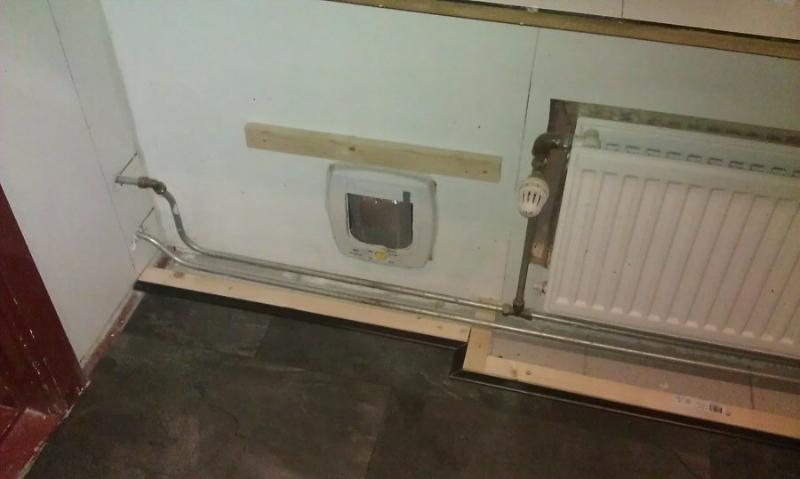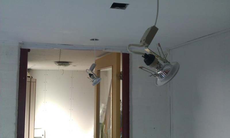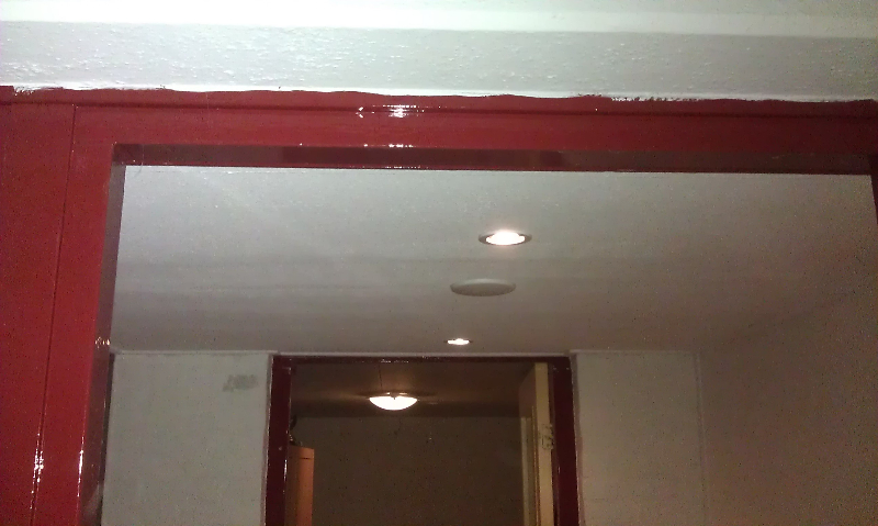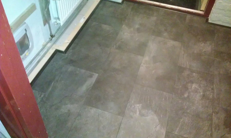 De bijkeuken is bijna af. De LED spots zitten er in, alles is voorzien van structuurverf, en vanavond heb ik het laminaat gelegd met de aerogel isolatie eronder.