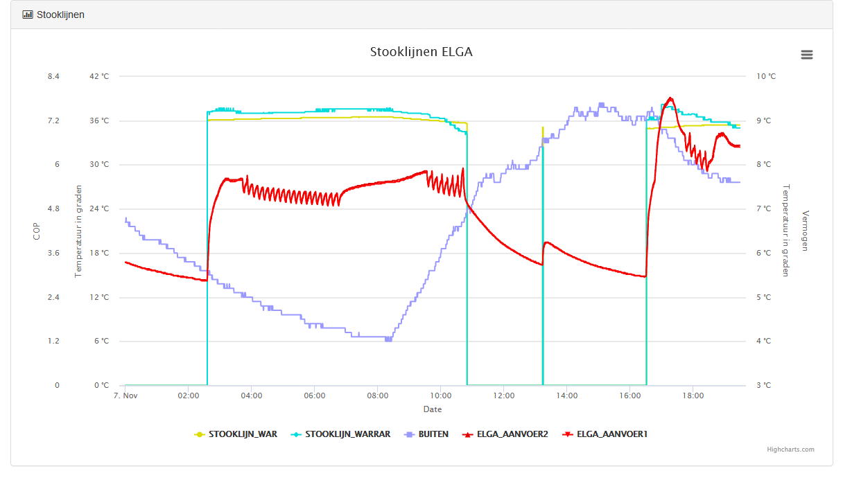 Mijn ELGA houdt zich niet bepaald aan de te verwachten stooklijn. Overigens; De ELGA heeft het huis prima warm gehouden afgelopen nacht.