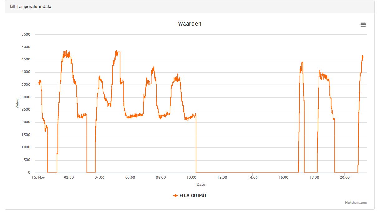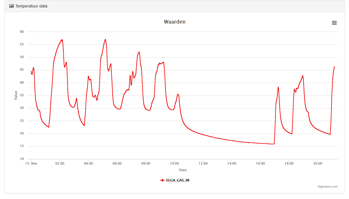 En dan de aanvoertemperatuur en GAS in temperatuur van de ELGA.