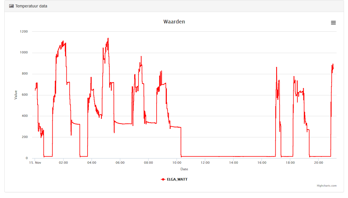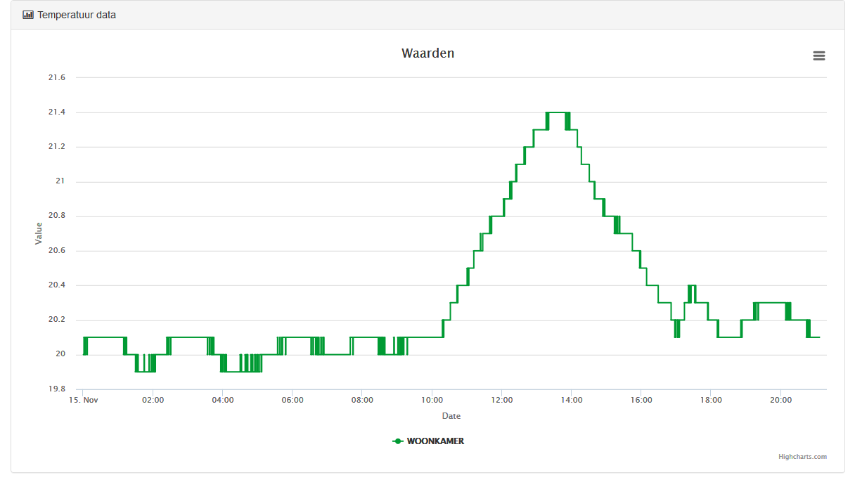 En dan het mooiste. Het temperatuurverloop in de woonkamer.