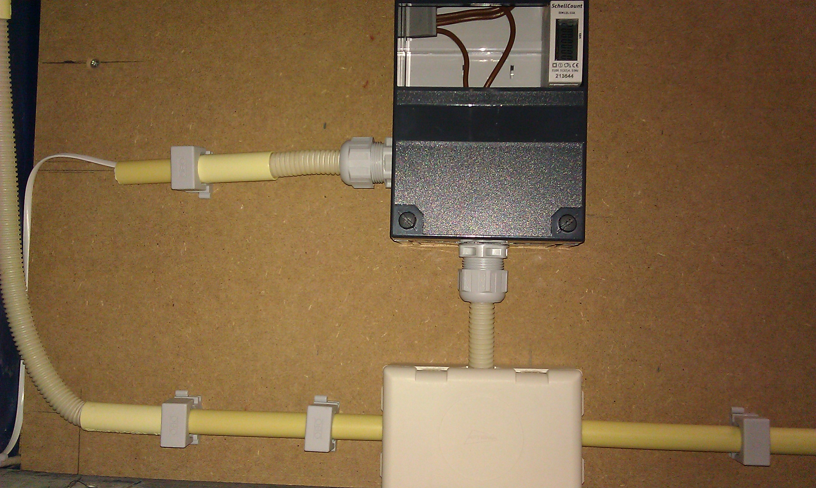 Het omvormerbord is af, het extra meterkastje hangt en de eerste kWhmeter zit erin en de S0 poort is aangesloten.