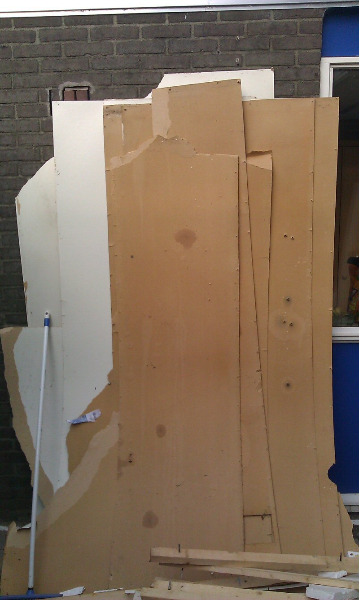 Vanmiddag verder gegaan in de schuur. Eerst de schuur helemaal gestript en daarna begonnen met het opbouwwerk. Eindelijk is de elektrahorror ook weggesloopt. *WAT* een drama.