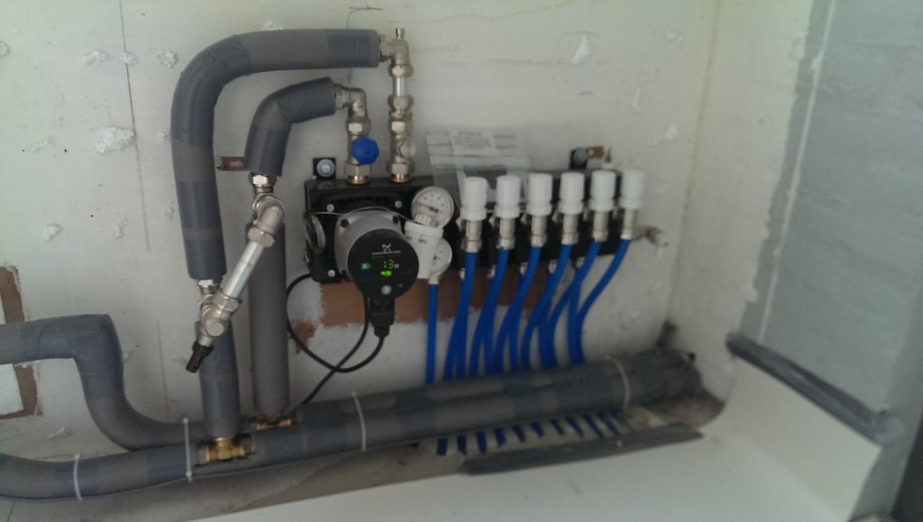 We zijn weer een paar dagen verder. De vloerverwarming is afgesmeerd, de ELGA wordt uitgebreid getest, alle buizen zijn geisoleerd, de WC is hard onderweg en er is begonnen met de voorzetwanden.