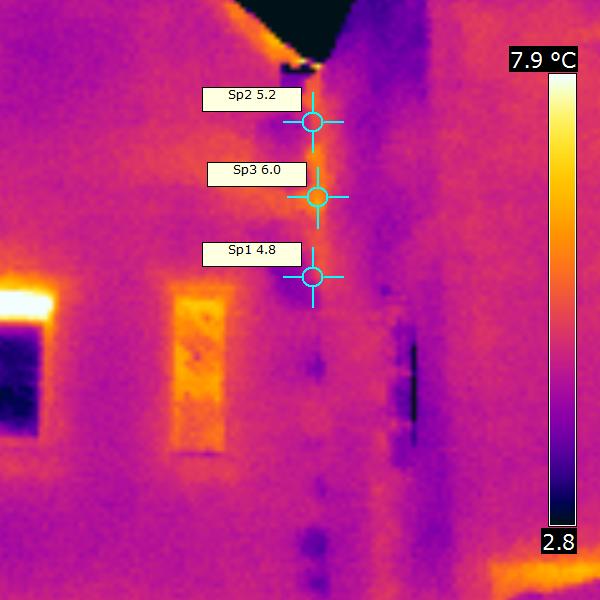 Hiermee is mijn vermoeden bevestigd dat dit warmtelek werd veroorzaakt door de badkamer. Nu de badkamer helemaal tot bovenaan is betegeld kan er geen vocht meer door de muur heen richting de spouw. Vocht heeft een enorme hoeveelheid warmte nodig om te verdampen en dat is dus nu niet meer nodig.