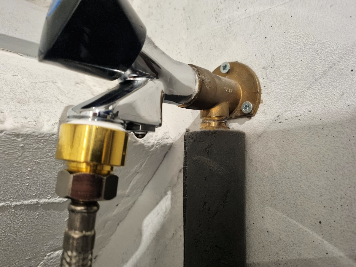 Dus aan de slag met twee slangen, 1/2″ naar 3/4″ verloopjes, teflon, afdichtrubbers en een bahco om alles aan te sluiten.